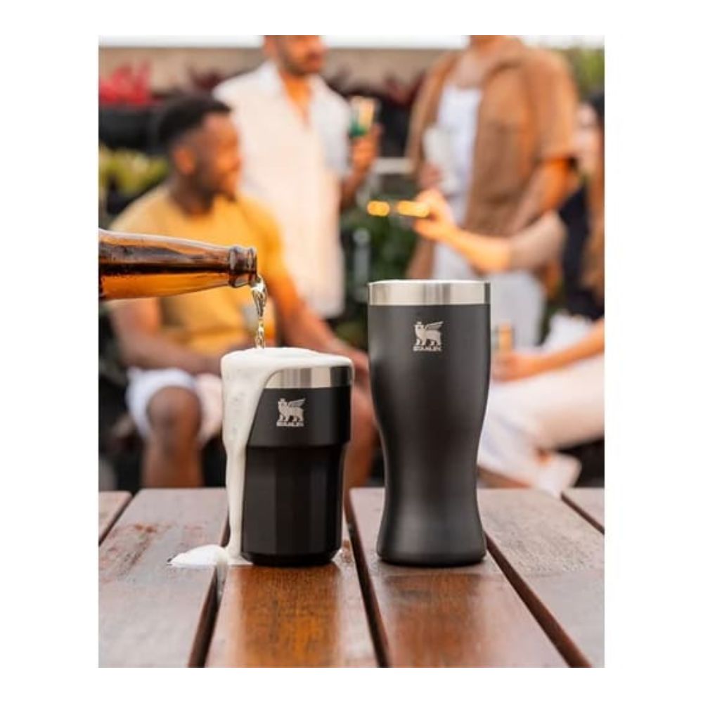 Celebrando los diseños de vasos de cerveza icónicos, los vasos térmicos Americanos de 410 ml combinan su acabado sofisticado y diseño ergonómico, manteniendo su eficiencia térmica ideal para tus momentos de celebración.